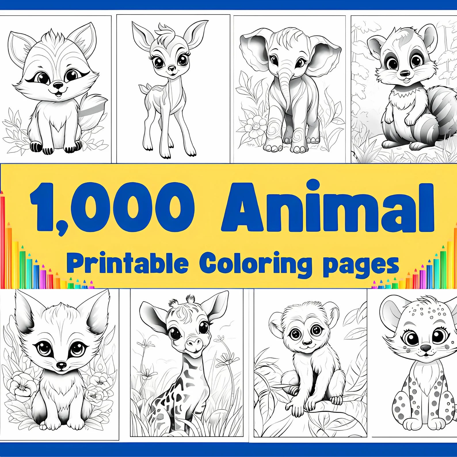 Discover the ultimate Animal Coloring Pages Printable Coloring Book for Kids, Preschoolers, and Toddlers! This massive bundle features 1,000 adorable, high-quality coloring pages designed to spark creativity and imagination in young children. From friendly lions to curious elephants, this collection brings the wild to life with engaging, simple designs perfect for little artists.