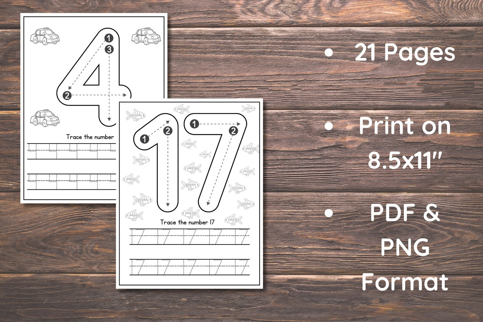 20 Number tracing worksheets, traceable numbers, preschool worksheets, 0-20 Printable Number Tracing, Kids Tracing, Handwriting Practice PDF & PNG Format 8.5x11"